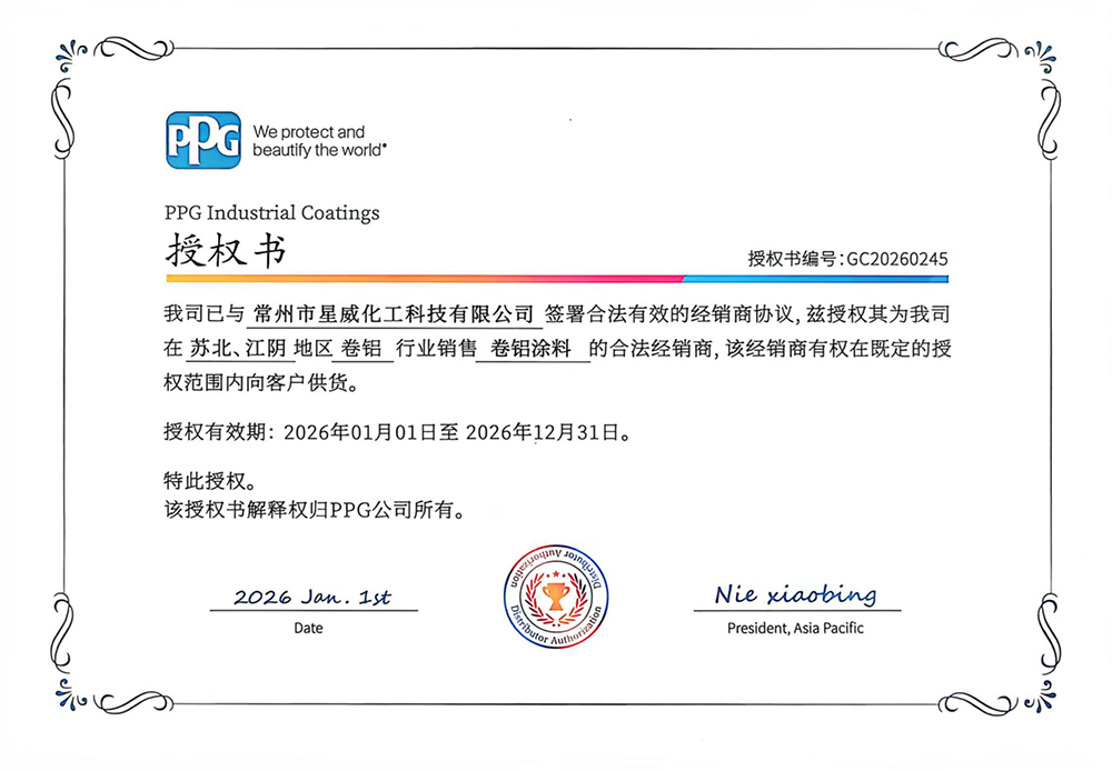 公司已获得 PPG Industrial Coatings 授权书!
