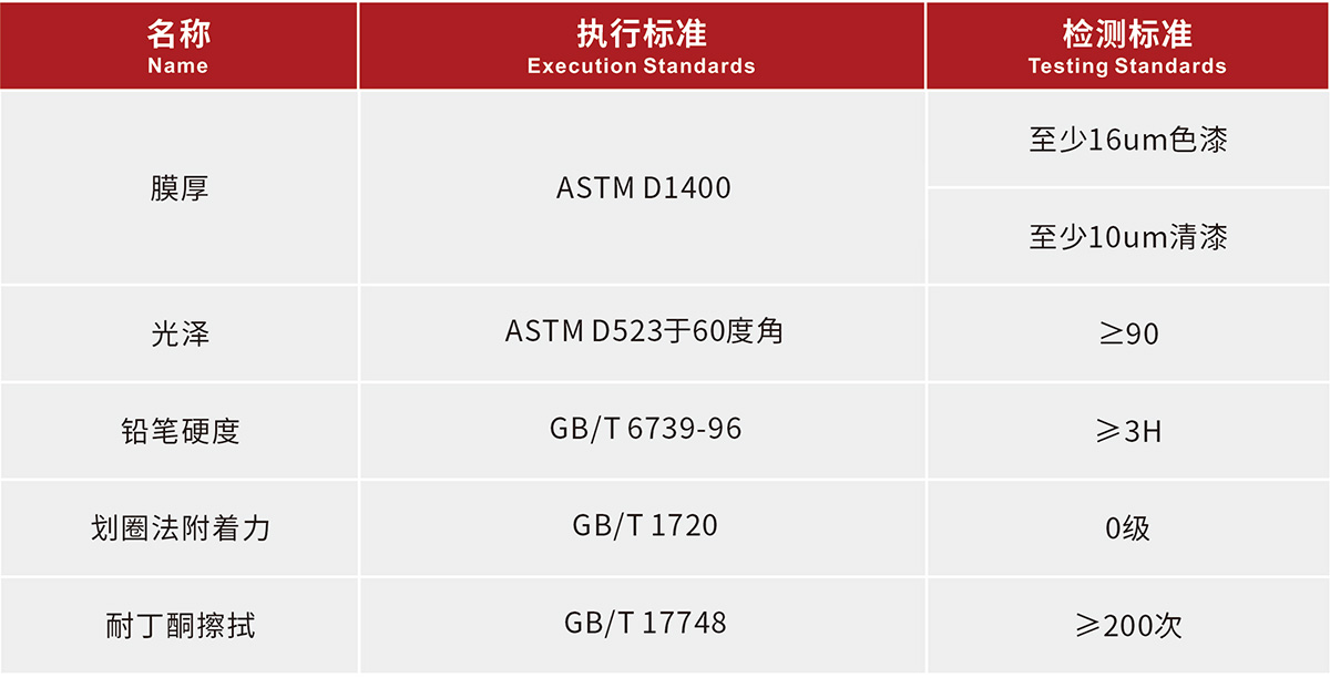 全色系调色、高光泽、高硬度、高平整度、高显影性,具有一定的耐刮性。